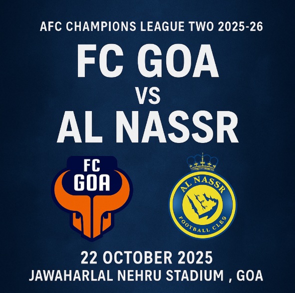 The much-awaited FC Goa vs Al Nassr clash in the AFC Champions League Two 2025-26 is set to make football history in India. Fans across the country are buzzing with excitement as one of Asia’s biggest football clubs, Al Nassr FC, visits India to face FC Goa at the Jawaharlal Nehru Stadium (Fatorda) on 22 October 2025 at 7:15 PM IST.