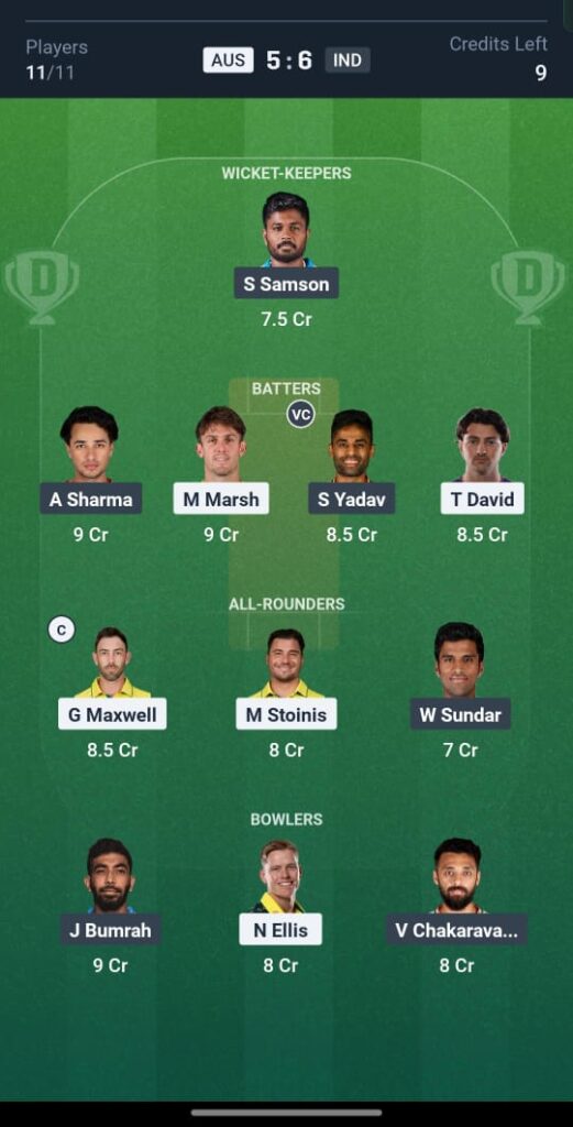 🏏 Dream11 Team (Small League Safe Team)