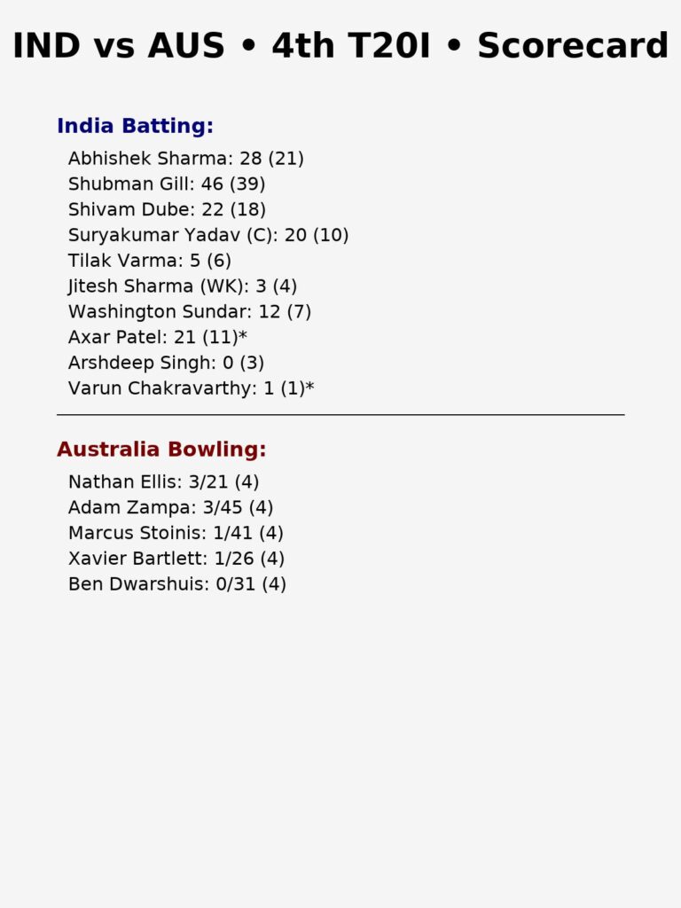 India Innings – 4th T20I (India tour of Australia, 2025)