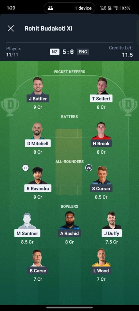 🧠 ENG vs NZ Dream11 Prediction – Small League Team