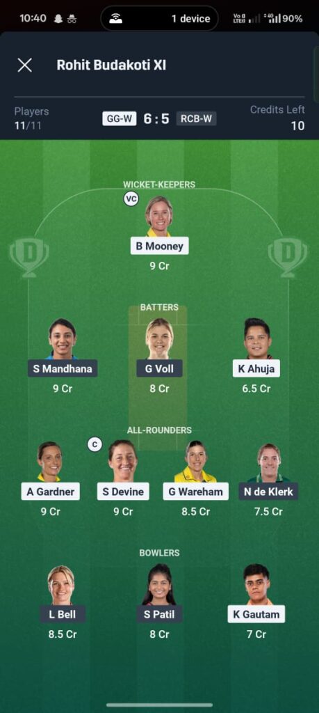 - Beth Mooney (GG): The backbone of the Giants. She loves the Vadodara surface and is the safest bet for wicket-keeper points.