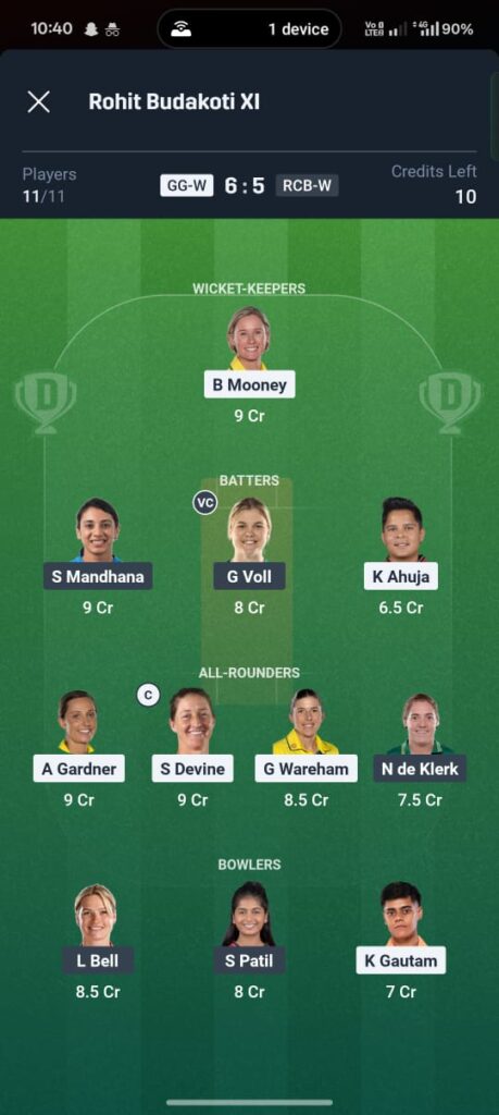 - Best C/VC: Smriti Mandhana (Captain), Shreyanka Patil (Vice-Captain).