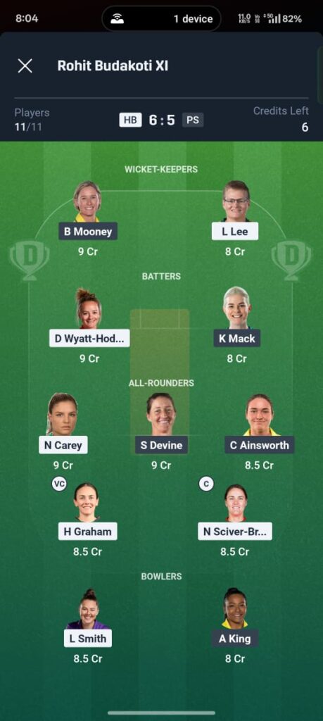 - Bold C/VC: Alana King or Danni Wyatt-Hodge. If Hobart bats first, Wyatt-Hodge can score a century.