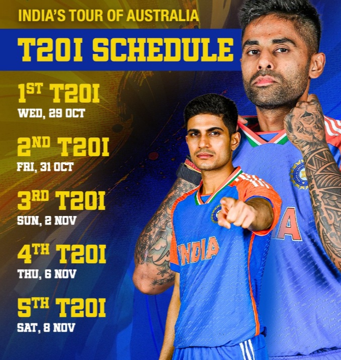 The Board of Control for Cricket in India (BCCI) and Cricket Australia (CA) have finalized a five-match T20I series as part of the 2025 India tour of Australia.