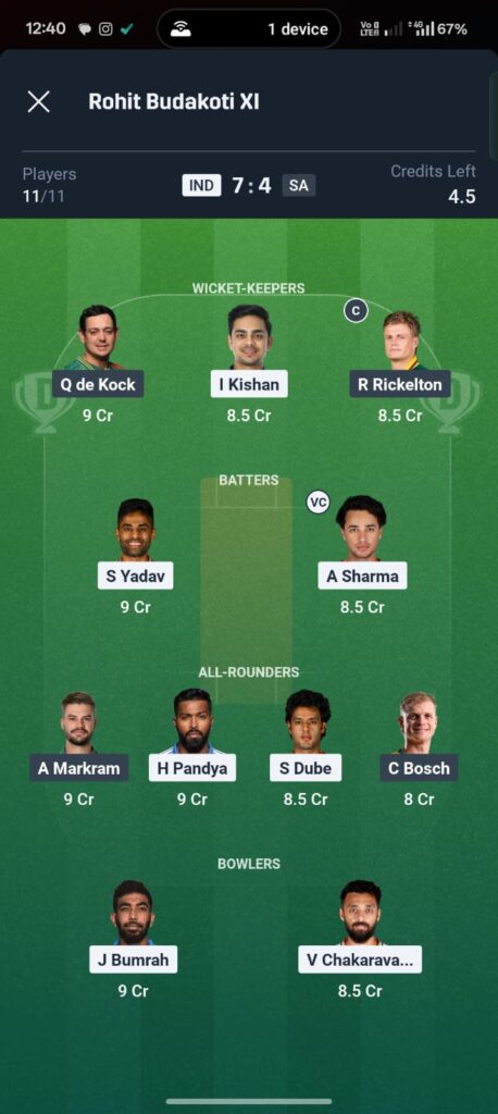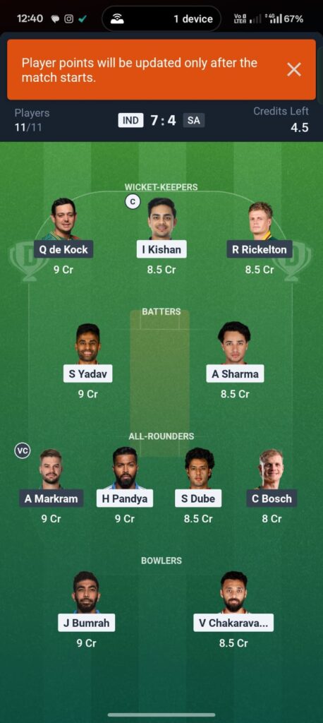 - Captain (High-Ceiling): Ishan Kishan. He has been in “imperious touch” this tournament, scoring 176 runs at a 200+ strike rate. On this ground, his boundary-clearing ability is unmatched.