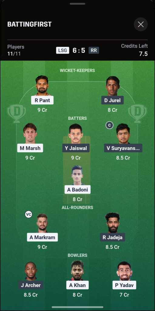 The LSG vs RR Dream11 Team requires careful selection based on recent form and pitch conditions. With both teams having multiple match-winners, choosing the right captain and balanced bowling attack will be key to winning fantasy contests.