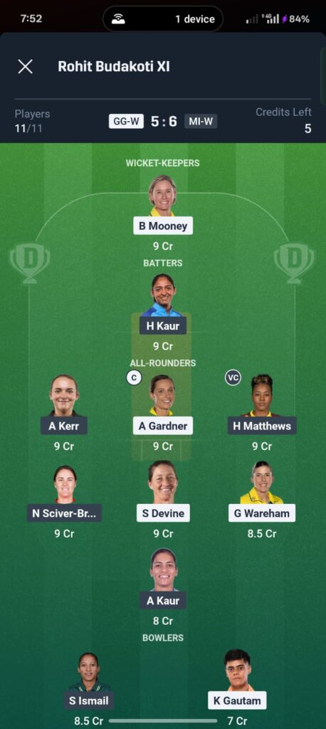 Beth Mooney (GGTW): The Australian wicketkeeper-batter continues her excellent form, providing solid starts and building substantial scores. Her consistency makes her the safest GGTW pick.