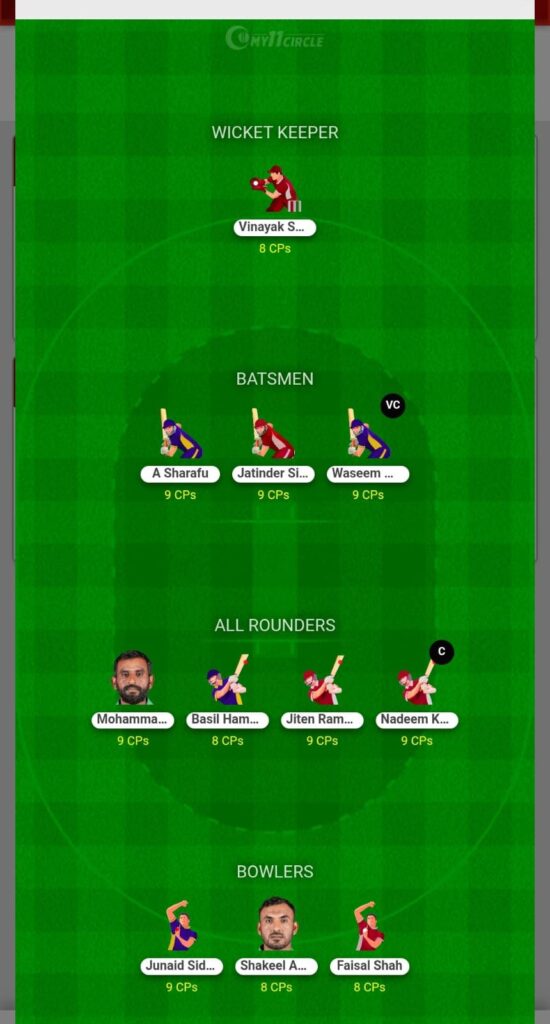 The best Oman vs UAE Dream11 Prediction recommends building a balanced team around proven all-rounders and consistent performers. Players like Jatinder Singh, Muhammad Waseem, Basil Hameed, and Mohammad Nadeem are essential for stability and points in both innings.