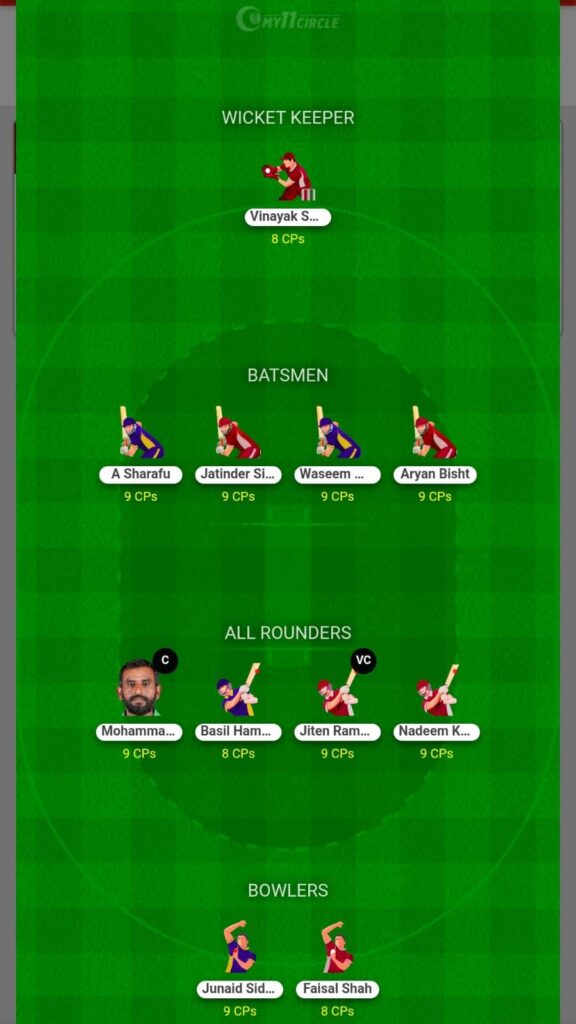 Captain – Junaid Siddique| Vice-Captain – M Nadeem.