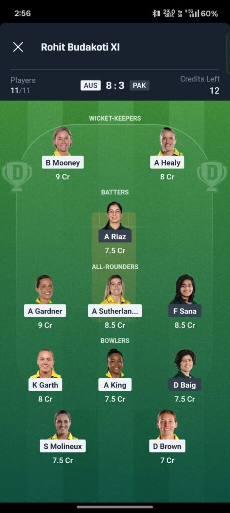 | Alyssa Healy (C & WK) | Australia Women | 56 runs (34 balls), 4 fours, 2 sixes | ✅ Top Captain Pick |