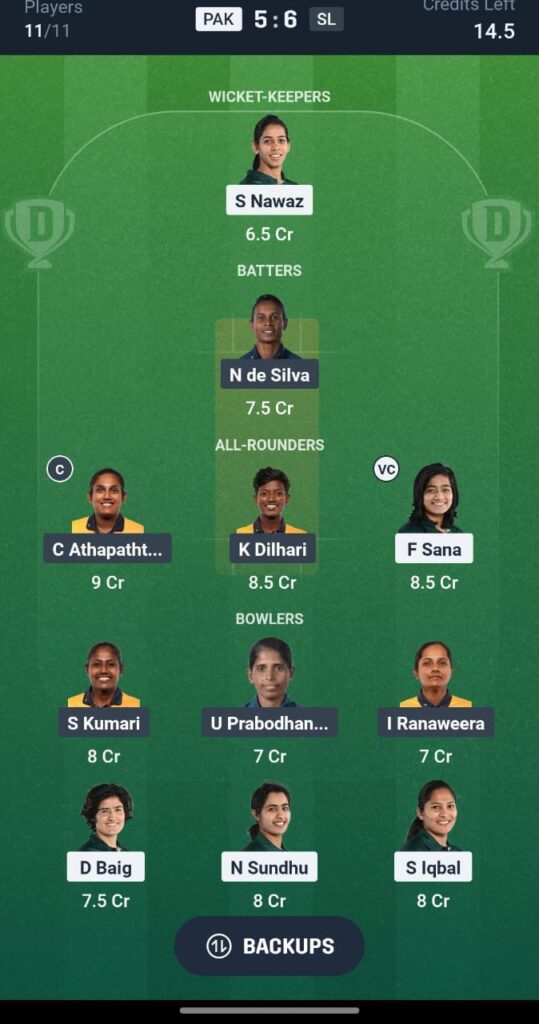 Dream11 Prediction Team: PAK W vs SL W
