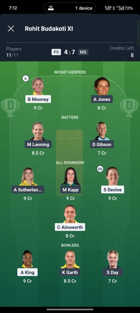 • Sophie Devine brings explosive batting + wicket-taking ability — a Dream11 goldmine.