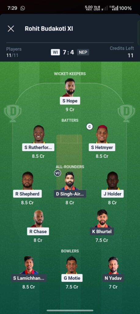 - ALL: Dipendra Singh Airee (VC), Roston Chase, Jason Holder, Romario Shepherd